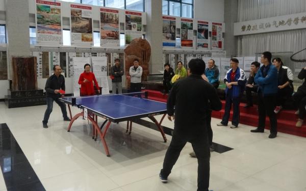 本次比赛相比往年最大的变化在于参赛代表队数量的增加:非常规油气与新能源研究院首次组队加入比赛,水平高、教职工人数多的地质系组建了两支代表队,这样包括学院机关和资源系、测井系、地球物理系、测绘系等共有8支代表队参赛,规模空前。为最大限度发动大家积极参与,本次比赛规定每场比赛由系(院机关)领导、男单、女单、男双和混双5局比赛组成,每场比赛中任何人不允许兼项,并且每场比赛必须打满5局。8支代表队分为两个小组,先进行小组内单循环,小组前两名出线后采用交叉淘汰赛,胜者争夺冠军,败者争夺第三名。最终地质系1队获得冠军,地球物理系代表队和地质系2队分获亚军、季军。比赛结束后还进行了表演性质的“明星赛”,把本次活动推向了高潮。