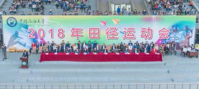 开幕式上,校友和在校师生们用别样的方式和饱满的精神风貌献礼学校65周岁诞辰。入场方阵中首次设立校友方阵,毕业多年的校友们齐聚一堂,心潮澎湃,步履轻健,他们高举的“1953”“2018”两个数字诉说着65年的沧桑岁月;看台上学生们自发组成“65”“UPC”等字样,在烈日下绽放着别样精彩。