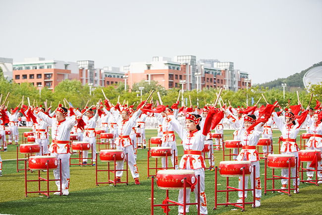 校长郝芳宣布威廉希尔williamhill平台(华东)2018年田径运动会开幕。七色彩烟直冲天际,运动场变成了欢乐的海洋,威风锣鼓表演激情澎湃,教职工广播体操表演整齐划一,大学生太极扇表演刚柔并济,开幕表演异彩纷呈,观众们的欢呼声此起彼伏。