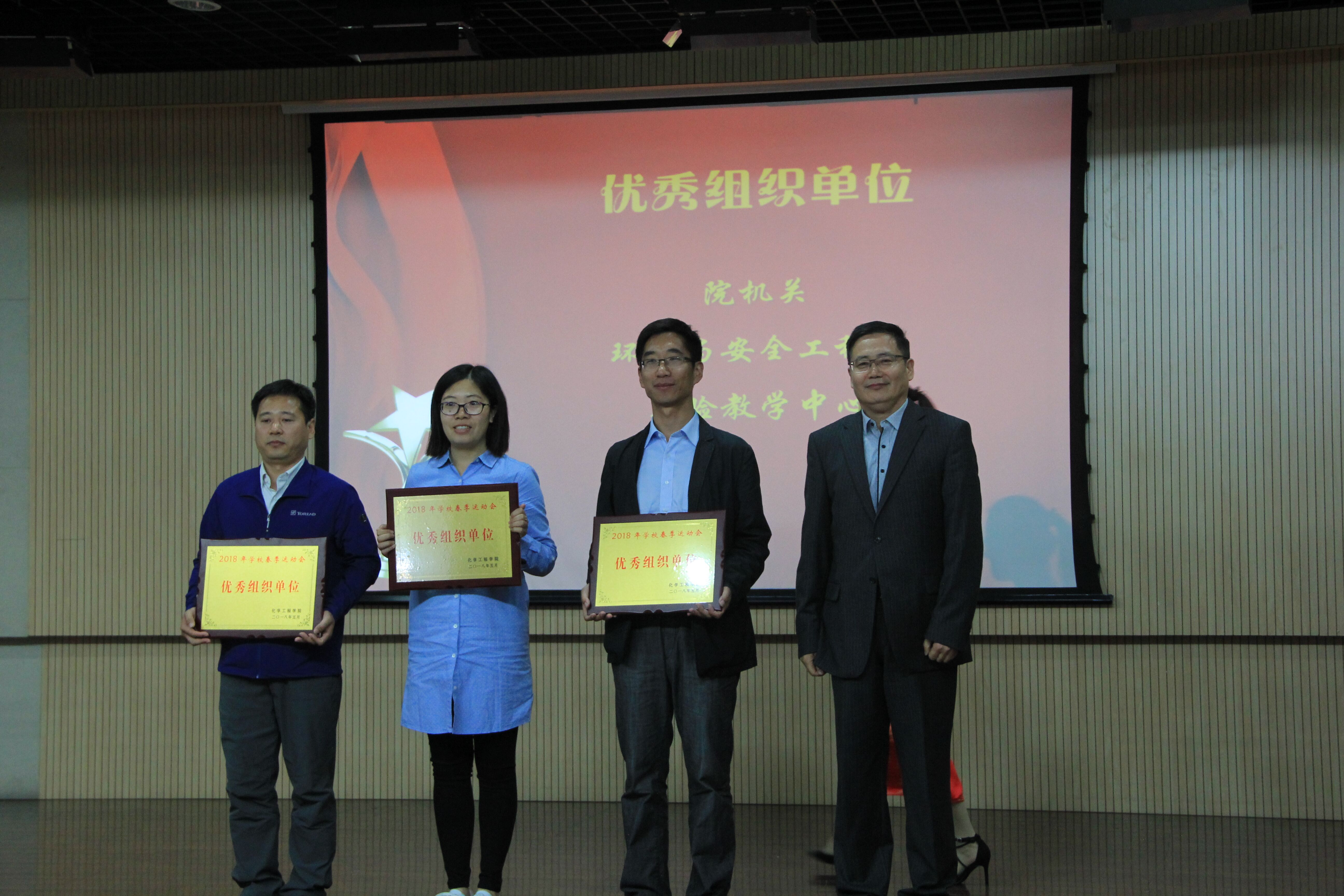 5月26日,化学工程学院在逸夫楼一层报告厅召开田径运动会表彰大会,庆祝学院在2018年学校田径运会上取得的骄人成绩,回顾一年来学院的体育工作,并对在运动会上表现突出的集体与个人进行表彰。工会主席张军出席大会并为优秀组织单位颁奖。