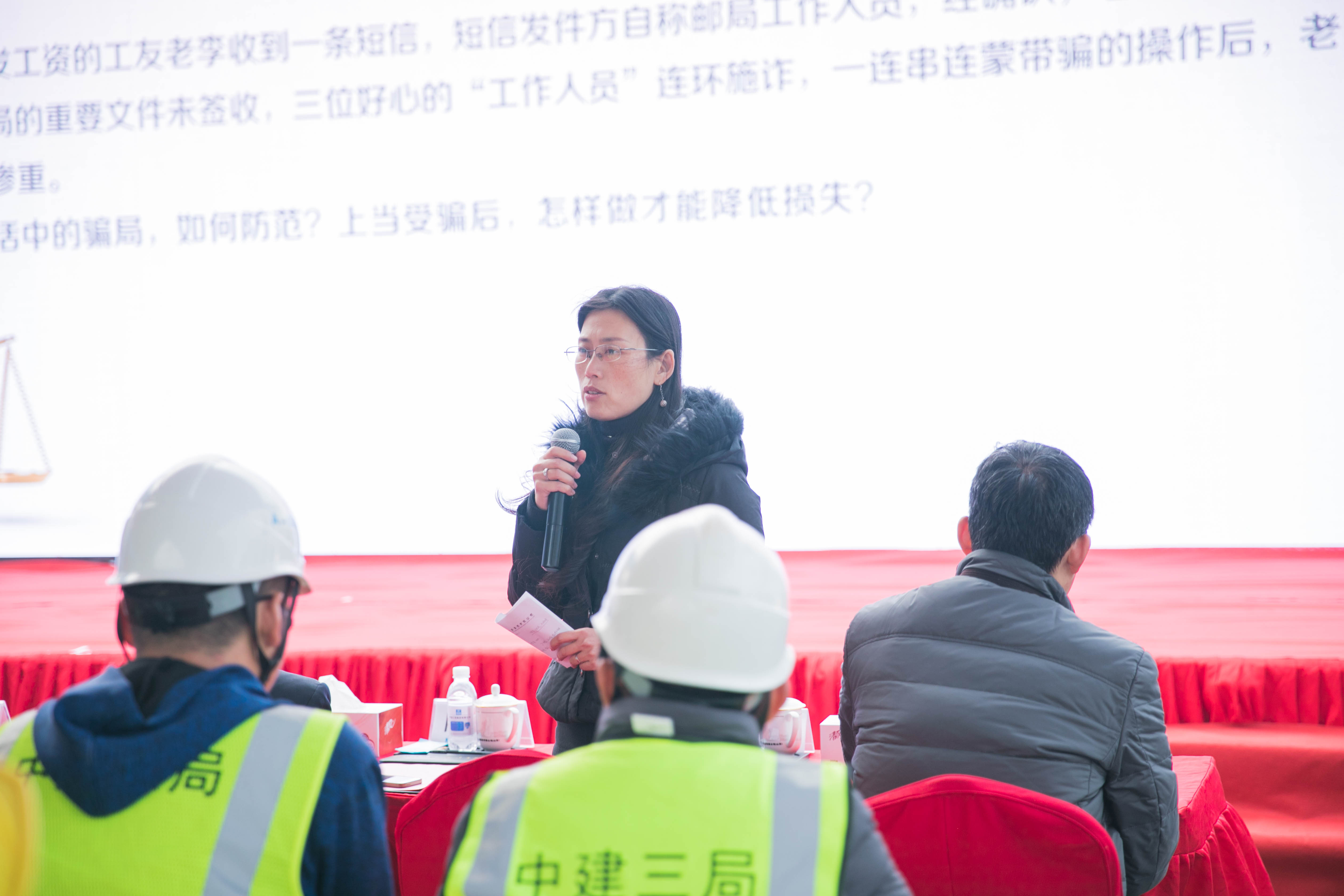11月29日,由威廉希尔williamhill平台(华东)与中建三局集团公司以12.4全国法制宣传日为契机,以“携手筑梦,情暖工地”为主题,赴建筑工地为农民工开展普法活动。