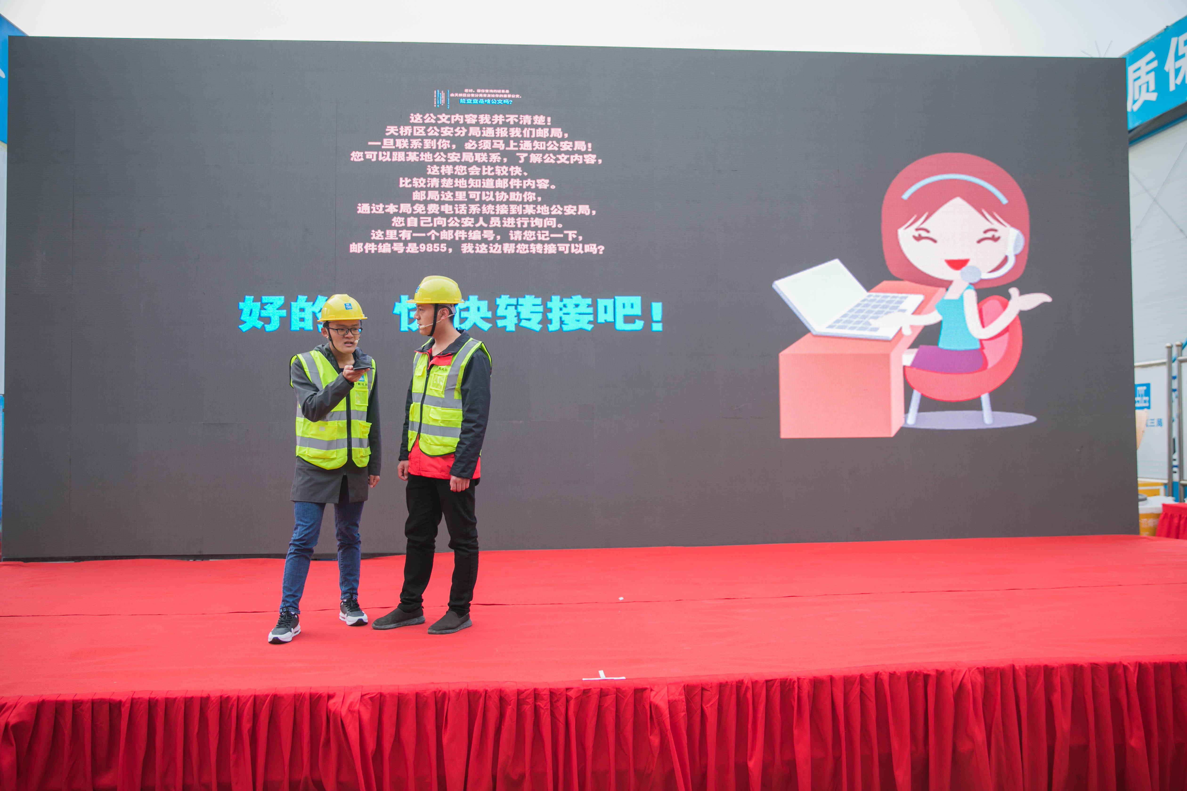 此次活动选择在中建三局所负责的青岛市黄岛区中船项目工地,该工程计划施工四年左右,除少量的技术人员和工程管理人员外,全部由六百余名农民工完成建设施工。高校师生将工地施工安全、常见电信诈骗手法等基本法律知识,寓于情景小短剧中,结合法学教师的现场讲解,师生共同为农民工奉献了一节生动的普法宣传教育课,提高了农民工的法律意识和自我防范意识。
