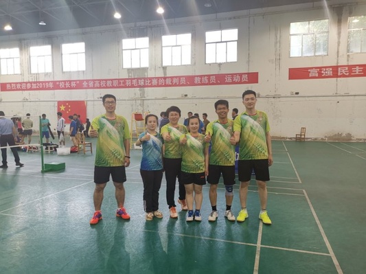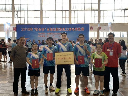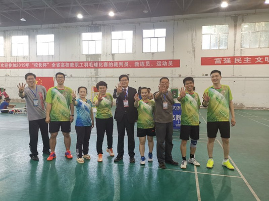 5月27-30日,2019年“校长杯”全省高校教职工羽毛球赛在烟台举行。我校张玲玲、赵东冶、段友祥、欧阳勇强、张晓明、张帆、赵晶晶、赵莹莹组队参加比赛,在“五羽轮比”赛制的团体赛中再获佳绩,成功卫冕冠军,取得四连冠。