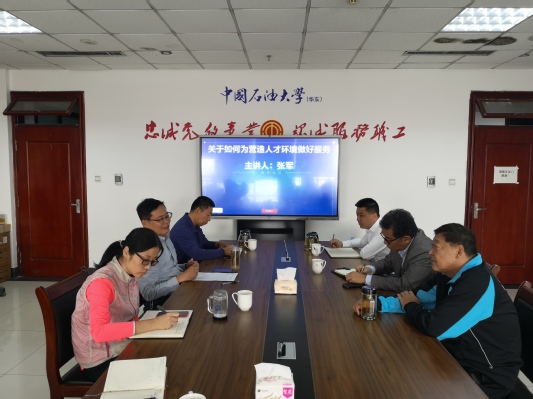 根据学校“不忘初心、牢记使命”主题教育安排,10月9日,工会主席张军结合近期理论学习的体会,以《关于如何为营造人才环境做好服务》为题给支部党员讲党课。学校第七指导组组长陈勇及成员杨超应邀参加,并给予点评和指导。