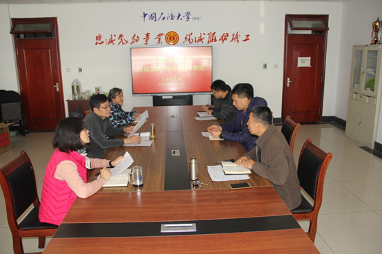 汤平如传达了学校和机关党委有关会议精神,结合《威廉希尔williamhill平台(华东)教职工党支部工作质量提升规范》文件精神,学习了“六个规范提升”内容,并结合支部排查存在的问题清单,重点对提升支部党务工作意识和能力、规范支部“三会一课”制度、规范开展谈心谈话工作等方面进行讨论,深入研讨了相应的整改措施。