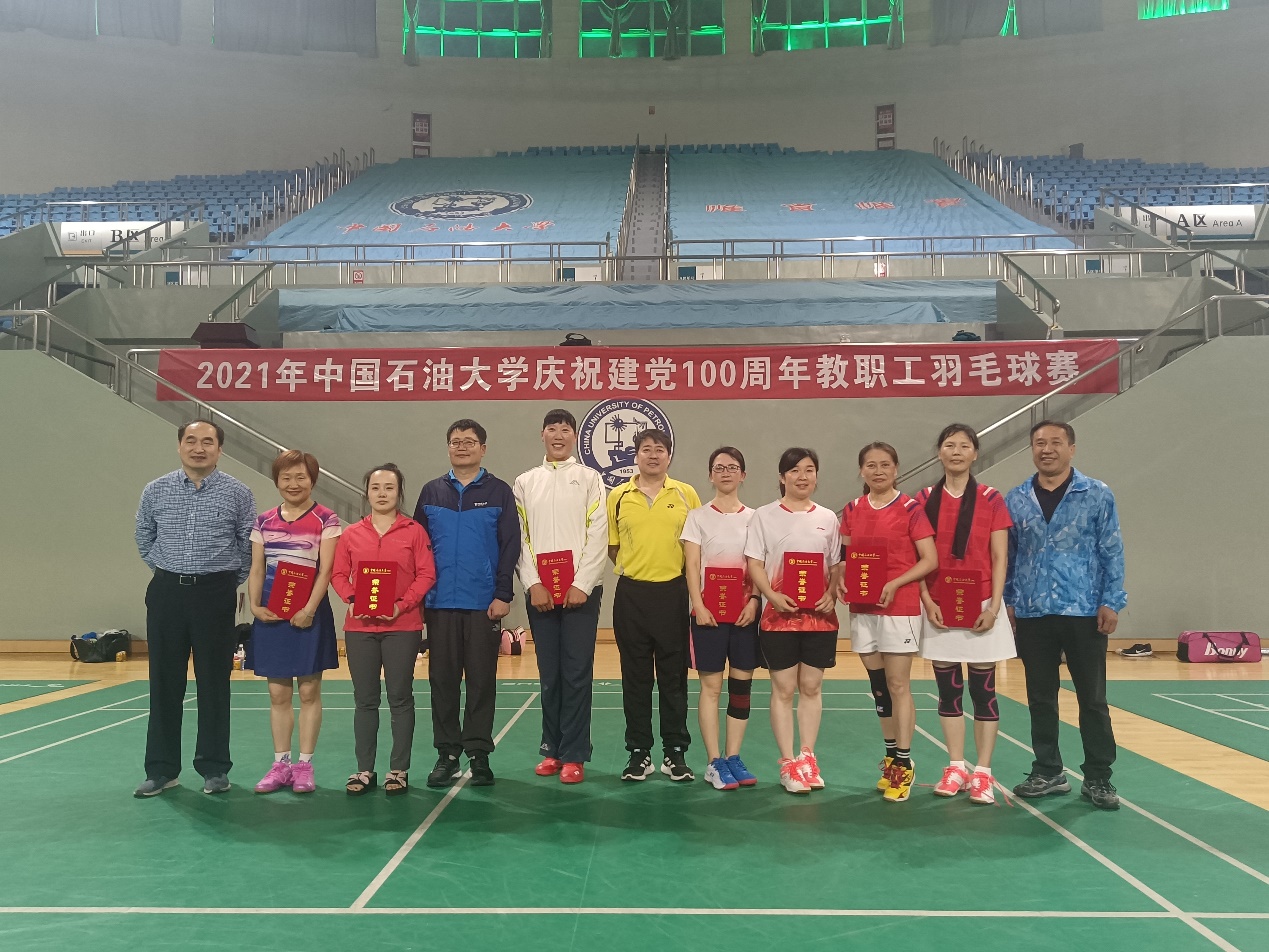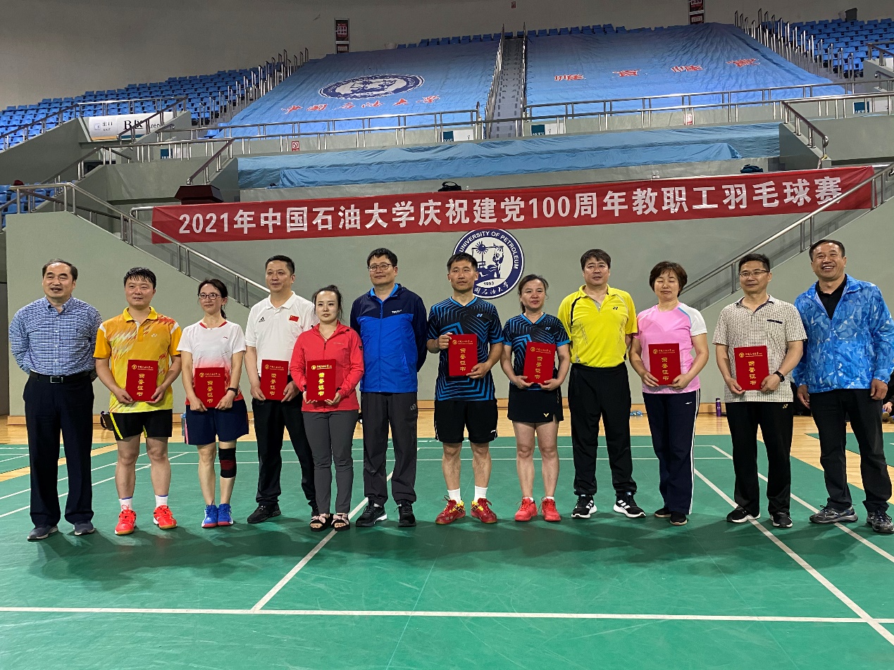 6月4日,2021年威廉希尔williamhill平台(华东)庆祝建党100周年教职工羽毛球赛落下帷幕。经过激烈的角逐,青岛校区获得团体赛前四名的单位分别是:化学工程学院、校机关、经济管理学院-机电工程学院联队、教育发展中心。获得男子双打前四名的是:汤旭波,姜士绅;张晓明,王海滨;段友祥,马竞锋;熊文,段俊柱。获得混合双打前四名的是:周伟,赵莹莹;王纯正,段红玲;齐建民,田玉英;徐九韵,梁玉环。获得女子双打前四名的是:赵莹莹,师雪;岳金霞,牛继玲;冯燕云,李晏菊;段红玲,郭宁。东营校区获得团体赛前两名的单位分别是:东营校区机关、东营校区后勤保障处。获得男子双打前两名的是:孙志刚,李坤;朱兴强,刘军伟。获得混合双打前两名的是:方凌琪,法丽红;杨峰,王云平。获得女子双打前两名的是:汪兰芳,邓丽丽;法丽红,舒怡。