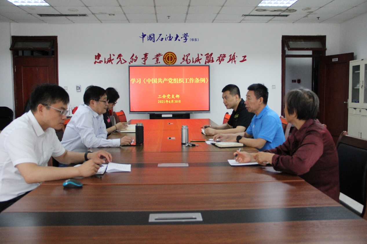为迎接中国共产党成立100周年,6月30日,工会党支部举行迎七一主题党日活动,活动由支部书记、工会副主席汤平如主持,工会主席张军参加。