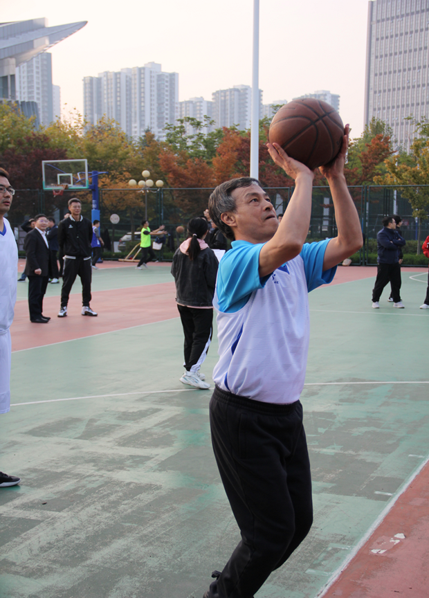 本次比赛采取竞技和趣味相结合的方式,即男子四对四+男女混合定点投篮综合算分,扩大了教工参与度,提高了团队协作能力。控制学院于连栋教授、地学院林承焰教授等知名教授纷纷上场一展身手,场上精彩不断,场下喝彩连连。