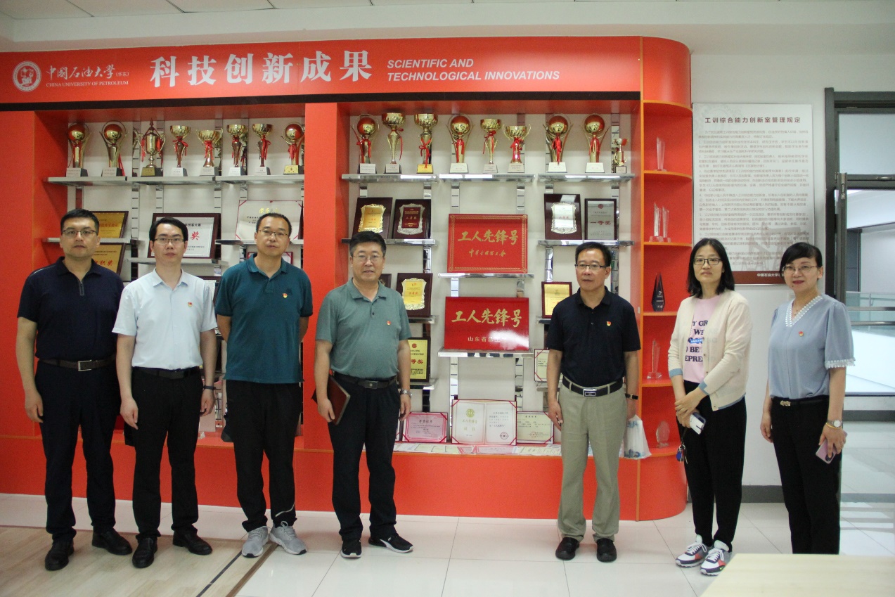 会前,校工会主席、党支部书记王德钊一行5人在工训中心相关人员陪同下,参观了现代焊接与激光加工实训室、虚拟仿真体验室、注采工艺实训室、钻井工具与装备实训室、大学生创新实验室等,了解中心的教学开展情况及近年来在学科建设、大学生创新平台搭建、科技成果转化等方面取得的成绩。