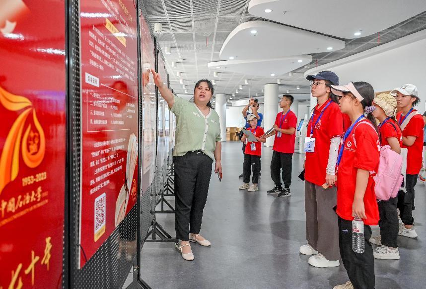在充满历史气息的校史馆,后旗师生详细了解学校的发展历程,切实感受到了学校深厚沉稳的文化底蕴、浓郁的学术氛围、朝气蓬勃的青春气息;国家级石油工业训练中心为孩子们揭开了“工业血液”石油生成、钻探、开采、加工炼制的神秘面纱,同学们积极参与科技体验项目,激发了好奇心和创造力;走进地学院地质博物馆,同学们看到了形态各异的岩石样品,了解各类岩石的形成过程,感受大自然的鬼斧神工。同学们还走进大学食堂、宿舍,深入体验大学生活。大学生志愿者与同学们面对面交流,分享学习方法,传授学习经验,畅谈大学生活趣事。