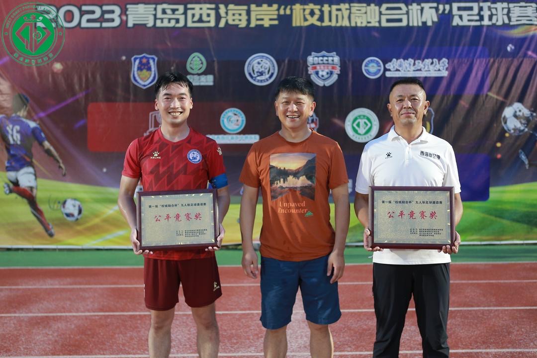本届“校城融合杯”足球邀请赛历时一个多月,进行了52场比赛,吸引了区直机关、开发区公安局、铁山街道、威廉希尔williamhill平台(华东)等共计15支队伍参赛。在校工会的大力支持下,我校代表队由体育教学部主任周伟担任领队、教师陈晓伟担任教练,小组赛中以5:2战胜山东科技大学并作为唯一高校代表队进入淘汰赛。在四分之一淘汰赛中0:1惜败铁山街道队,后在排位赛中通过点球大战连克黄岛区公安局队、开发区公安局队,最终获得第五名,参赛高校代表队中最好成绩,学校获“公平竞赛奖”,张鑫获“最佳球员奖”。