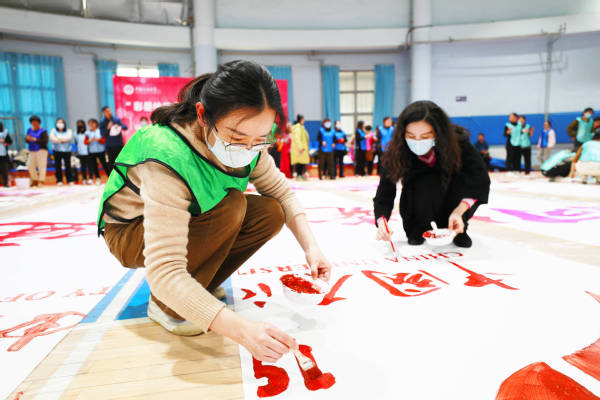 为庆祝国际劳动妇女节,丰富女教职工文化生活,提升团队协作力和凝聚力, 3月6日下午校工会开展“彩墨绘蓝图,巾帼谱新篇”纳斯卡巨画绘制活动。此幅巨画长约15米,宽约10米,共有200余名教职工参与其中,画出心中对党和国家的无限忠诚,也画出对学校70周年校庆的美好祝福。