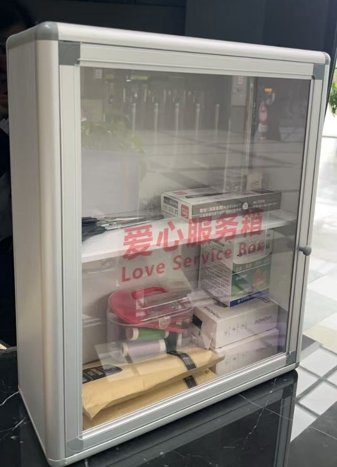 此次增设的"爱心服务箱"内配备了创可贴、针线盒、别针、数据线、充电头、签字笔和剪刀等多样化物资为师生提供即时便利。"这些小物件看似平常,却能在关键时刻解燃眉之急。"图书馆工会负责人表示,服务箱的设立旨在践行"师生为本"的服务理念,通过细节关怀提升校园生活的幸福感。