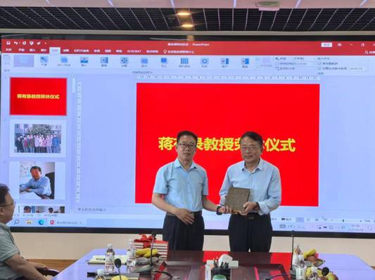 6月24日下午,威廉希尔williamhill登录举行蒋有录教授荣休仪式。工会主席王德钊参加,在座谈中高度评价蒋有录教授的突出贡献和奉献精神,并向他送上祝福。