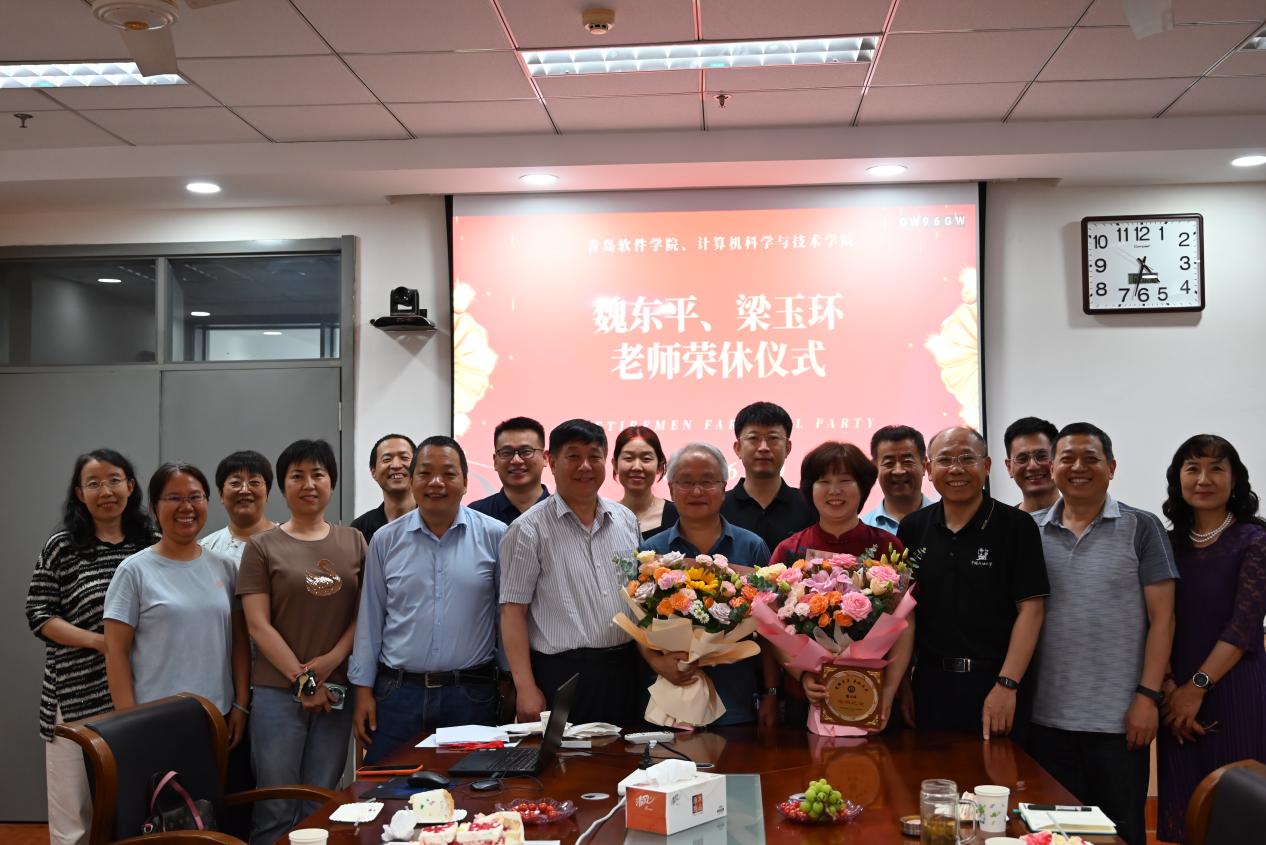 2025年6月20日下午,计算机应用技术系与学院工会在工科楼E座1712会议室为魏东平、梁玉环老师举办荣休座谈会。院长庞善臣、副院长李华昱及多位教师出席,系党支部书记张千主持。