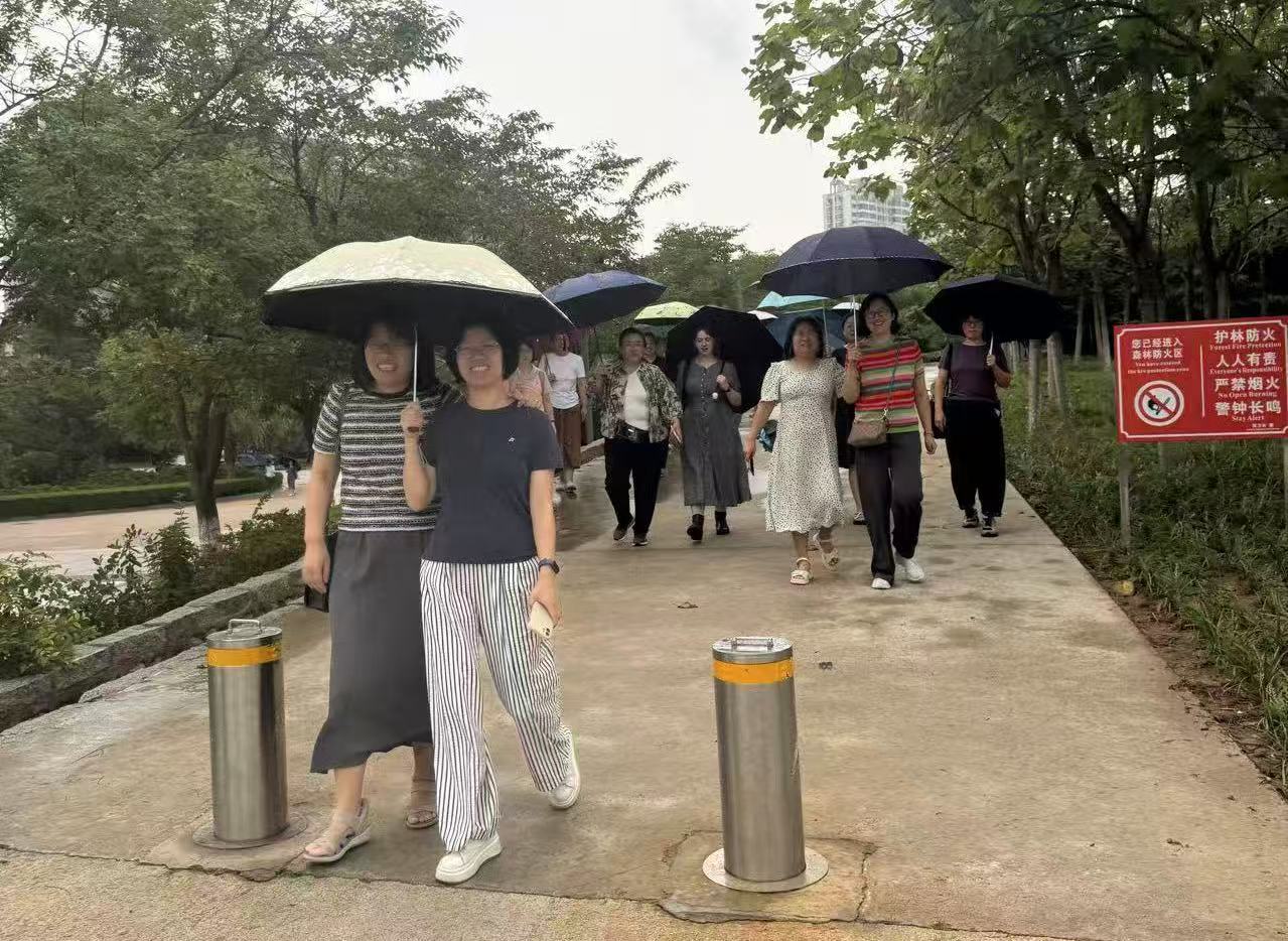 随后开展校园徒步活动。教职工们沿小黄山生态步道行进,沿途欣赏校园自然景致,多位教师结合校史展见闻,畅谈新时代教师的使命担当。在锻炼体魄的同时,沉浸式感受校园深厚的人文底蕴与优美的生态环境。