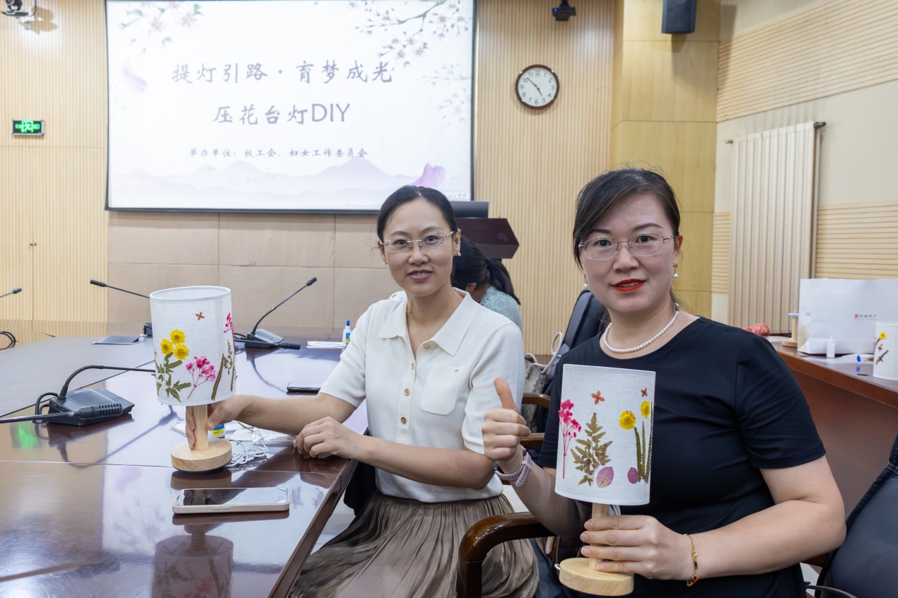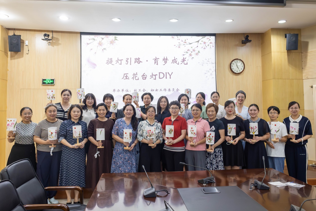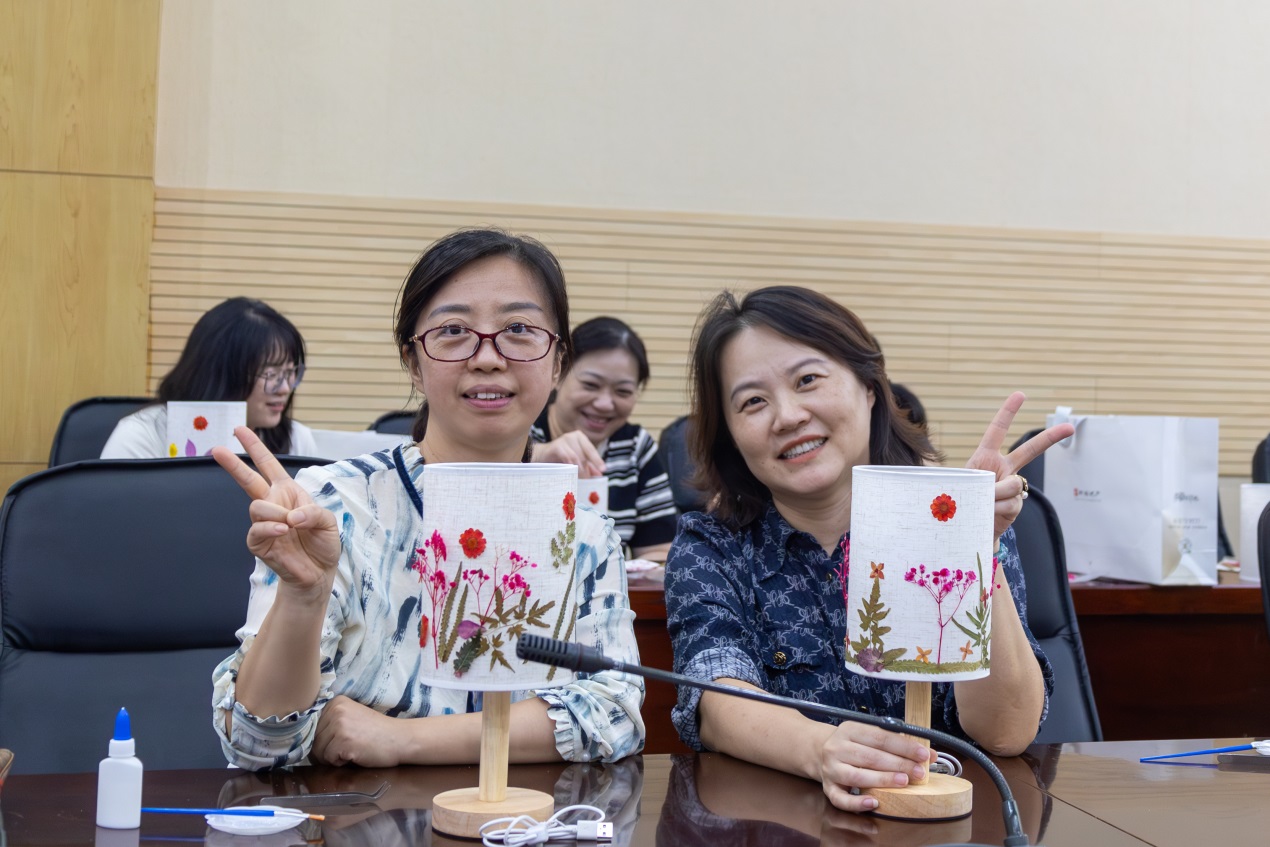 秋高气爽,桃李芬芳。为庆祝第41个教师节,活跃教职工精神文化生活, 9月9日,校工会、妇女工作委员举办“提灯引路,育梦成光”压花台灯DIY活动。