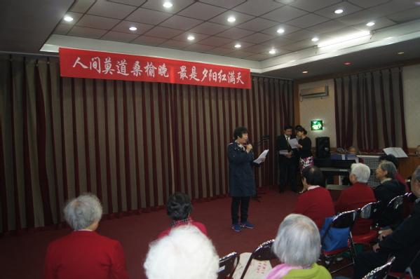 首先,李国主任发表了热情洋溢的致辞,透过对服务的老同志一组组年龄分布数据,得出:生活越来越美好,高龄老人越来越多的结论,他希望将来北京离退休工作办公室成为“百岁老人俱乐部”。六道口社区居委会许淑惠主任介绍近期“送温暖”活动,要把服务送到家、做到位。