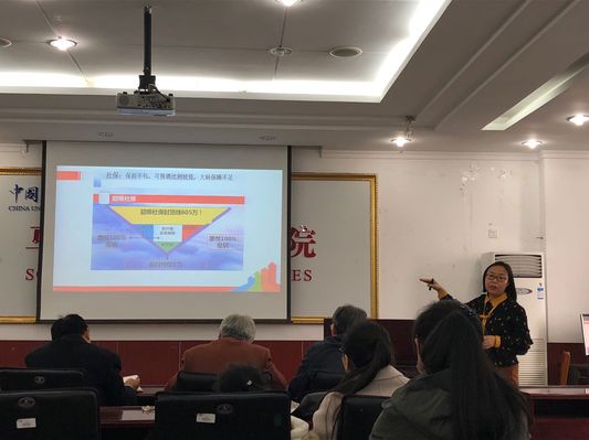 2018年12月1号上午,马克思主义学院工会聘请中国人寿保险公司青岛支公司黄岛公司业务主管吴仕兰女士为学院教职工举行了一场保险知识讲座。吴女士从国家政策、人生规划以及自身需要等几个方面论述了保险在生活中的重要意义,提升了广大教职工应对未知危机的意识。