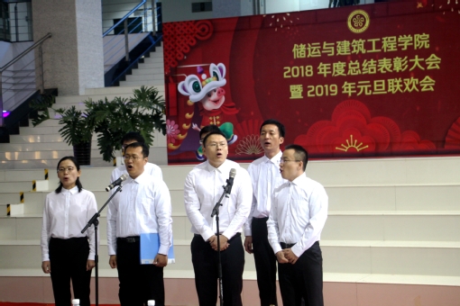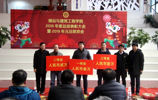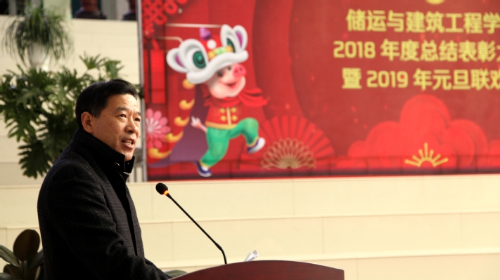 数九寒天人心暖,一家欢聚情意浓。伴随着冬日里温暖的阳光,2018年走到了岁末年尾,2019年元旦如约而至。为总结学院一年来的工作,表彰先进、树立典型,激励全院教职工奋发向上、开拓创新,储运与建筑工程学院于12月27日在工科楼D座大厅隆重举行2018年度总结表彰大会暨2019年元旦联欢会。副校长姚军、校工会主席张军、信控学院党委书记李心市、机电工程学院党委书记李海林、档案馆馆长牛庆玮、规划处副处长张旭东等领导、院友和退休老同志应邀出席。