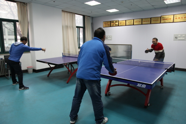 “乒乒乓乓”,学院乒乓球室传来响亮的击球声,反手、侧身、削球、拉球,时而轻轻吊个“近小球”,时而来个“端线长球”,时而猛扣一板...球技高超的老师们在球场上大展身手。学院大厅气排球赛场上的老师们也毫不逊色,老师们自行组队展开了一场精彩的比赛,虽然是临时组队,但队员之间默契配合,打进攻、打防守、打协作,赢球时相互赞许,输球时相互鼓励,发球、垫球、传球、扣球完美配合,在赛场上尽情挥洒汗水,充分展示了储建人的拼搏精神。最愉快地还要属在活动室打够级的老师们,在门外就能听到里边传出的欢声笑语。老师们兴致勃勃地切磋牌技,对阵双方斗智斗勇,“牌”逢对手时,时而轻巧地甩出几张扑克牌,时而用力摔出清脆的响声,给对手带来气势上的震慑;同队的老师便配合默契、交流协作,充分体现了学院老师们的团队精神。