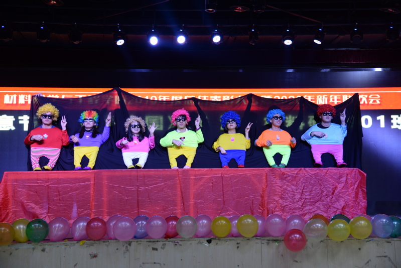 随后,新年联欢会氛围在研究生会激情洋溢的现代舞蹈《你笑起来真好看》中推向高潮,动感的节奏和活力四射的动作展现出当代大学生的青春魅力。学院机关教师表演的朗诵《青春中国》,慷慨激昂,回忆近代中国经历的屈辱,点燃了观众的爱国热忱。材料物理系教师带来的三句半表演《材一年》,回忆了学院成立以来的艰辛,赢得观众一致好评。一曲《我爱你中国》唱出了学院新入职教职工的赤诚爱国心与砥砺奋进志。短暂的“学习强国”挑战答题环节结束后,精彩节目纷至沓来。材料研1901班带来的创意节目《小人国》,以特殊形式的表演,令观众耳目一新拍手称好。由新能源材料系教师表演的舞蹈《鼠鼠生威》,灵动与欢乐并存,展现出了新年的蓬勃生机。随后材料化学系教师带来了小合唱《真心英雄》,鼓励每个人活在当下,砥砺奋进,成为自己的英雄。由全体辅导员演绎的小品《辅导员的一天》,展现了辅导员生活的忙碌与繁琐,令人捧腹之间又让人回味无穷。材料学系老师的歌伴舞《中年阵线联盟》,唱出了中年人的艰辛与乐趣,苦中作乐引发强烈共鸣。最后,联欢会在材料加工工程系教师小合唱《明天会更好》中落下帷幕,展望学院的明天,绘下美好蓝图。