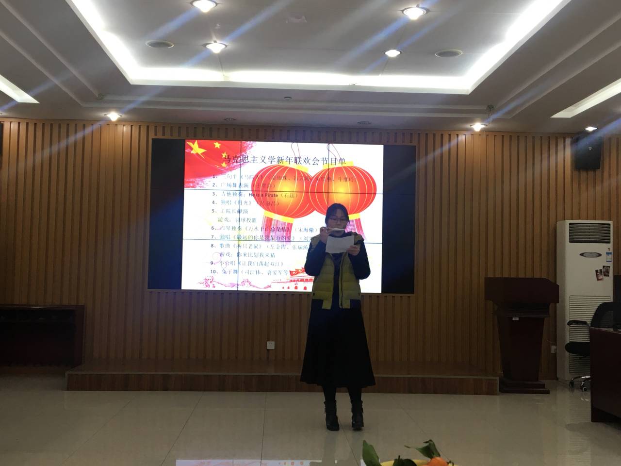 2020年1月10号下午四点,马克思主义学院全体教职工在文理楼举行了一年一度的新年联欢会。本次联欢会由刘兴波与宋红燕两位老师担任主持人,学院各部门分别贡献节目,是一场充分展示老师们才艺和智慧,充满迎春喜气的联欢会。
